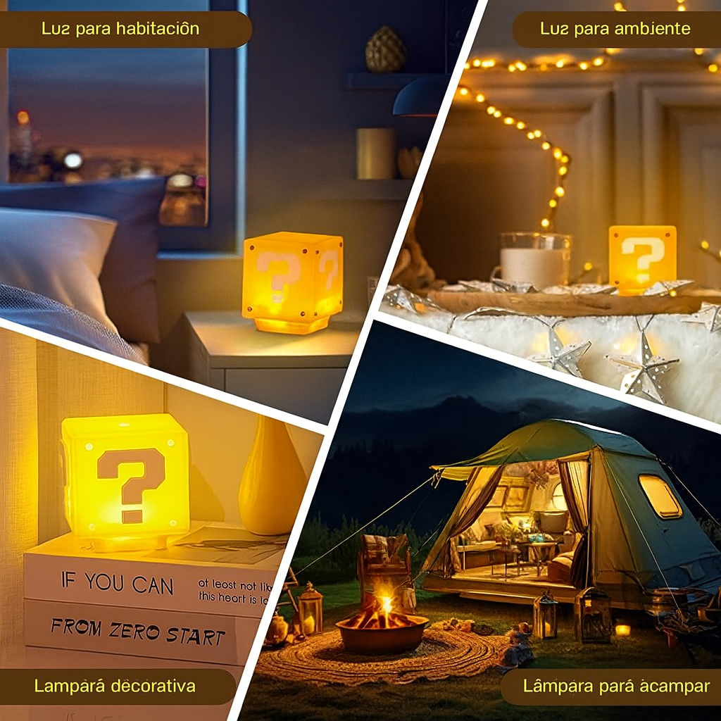 MINI LAMPARA LED BLOQUE RETRO INSPIRADO EN EL MUNDO DE MARIO BROS. CON MUSICA Y CARGA USB